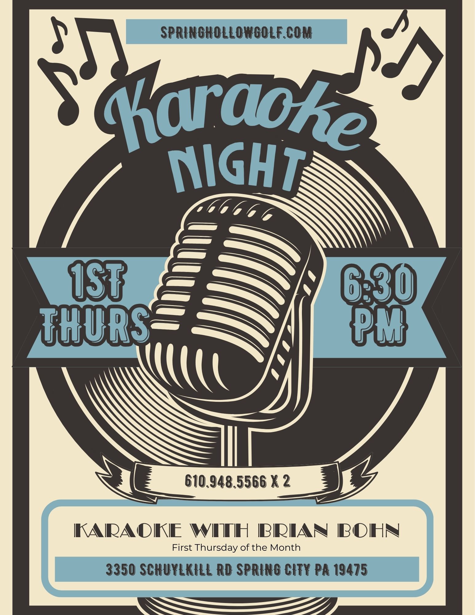 1st Thursday Karaoke with Brian Bohn + Add to Google Calendar + iCal / Outlook export 00 days 00 hours 00 minutes 00 seconds Date Mar 05 2026 Time 6:00 pm - 9:00 pm Share this event SearchSearchRecent PostsPlanning a Golf Outing for a Fundraiser in Philadelphia Why Host Your Summer Wedding at Spring Hollow Golf Club Planning a Holiday Party at Spring Hollow Golf Club Planning a Rustic Wedding at Spring Hollow Golf Club Recent CommentsNo comments to show.Archives January 2026 December 2025 November 2025 Categories Fundraisers Uncategorized Weddings